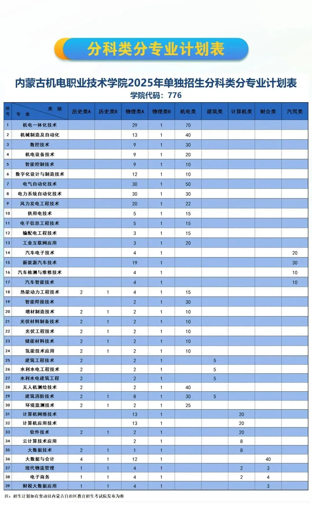 内蒙古机电职业技术学院2025年单独招生考试简章