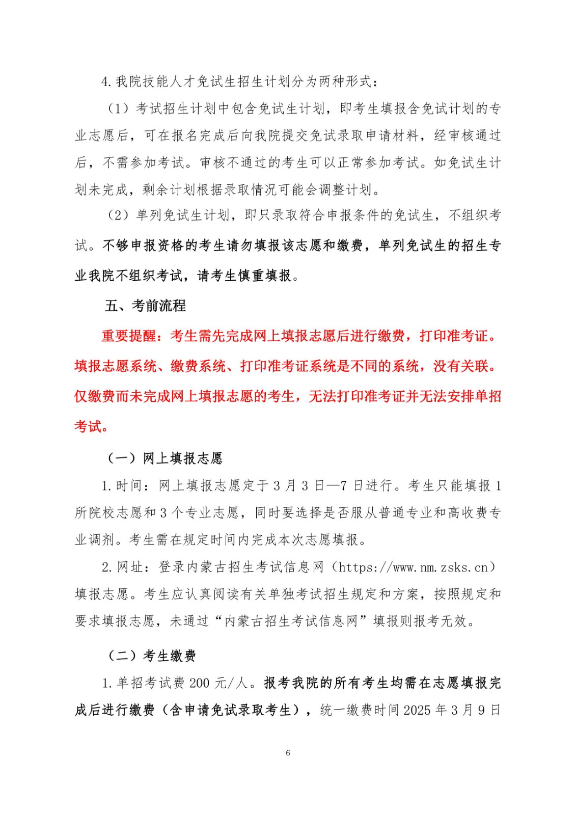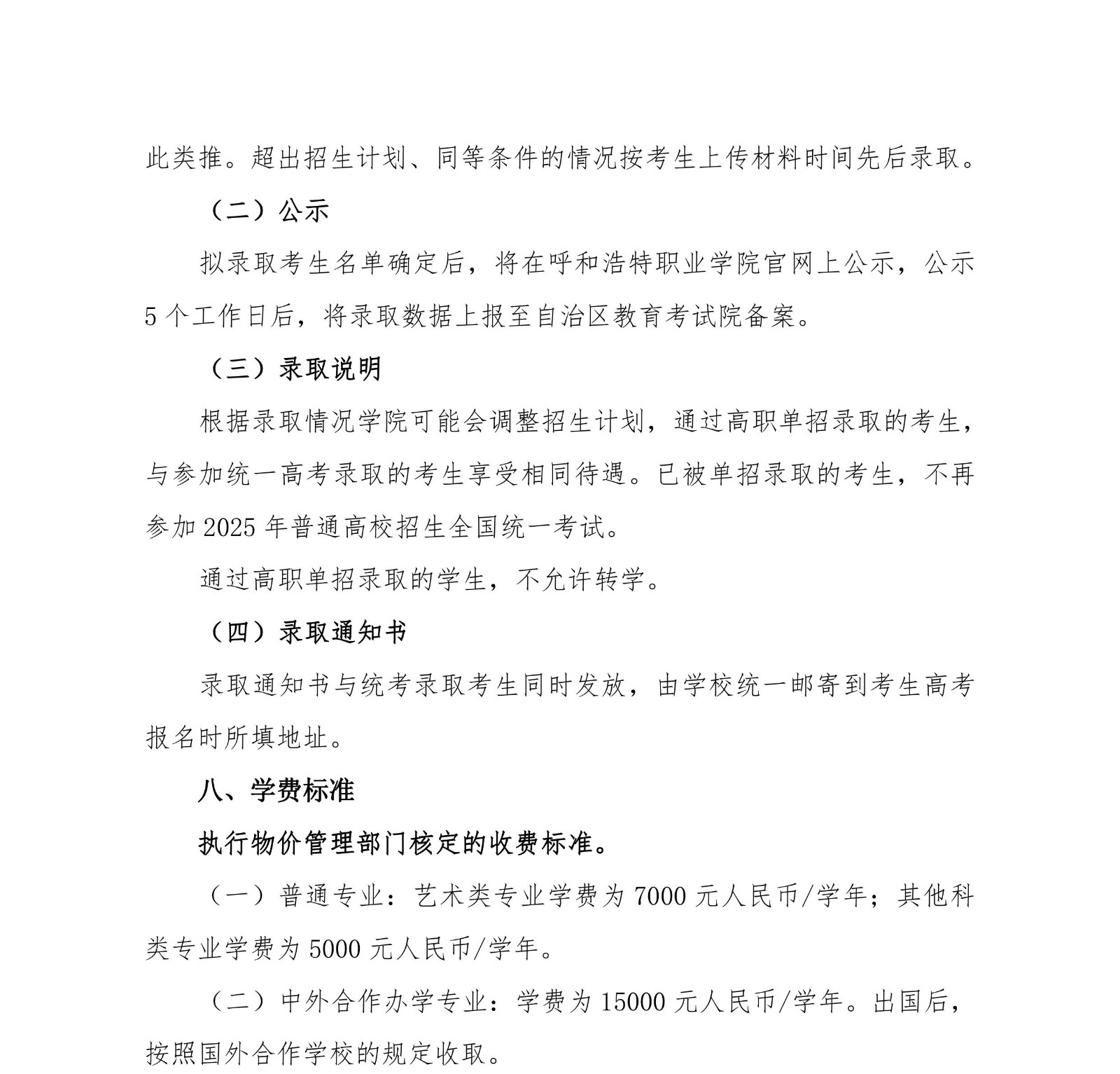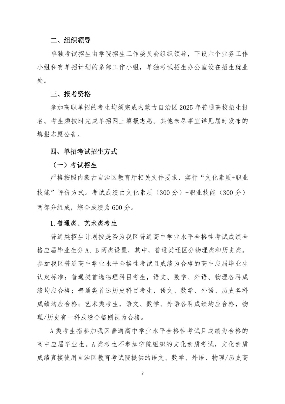 呼和浩特职业技术大学2025年单独考试招生实施方案