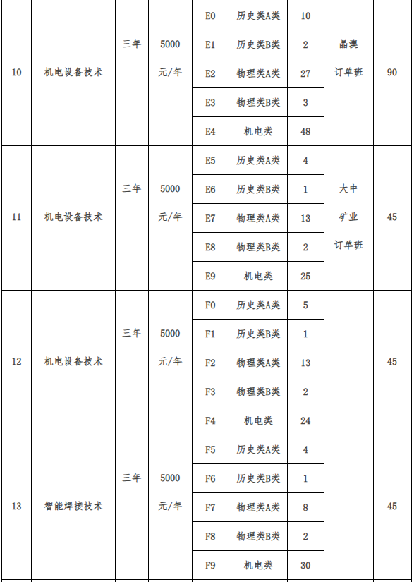 热门专业:黑色冶金技术、机电一体化技术、应用化工技术
