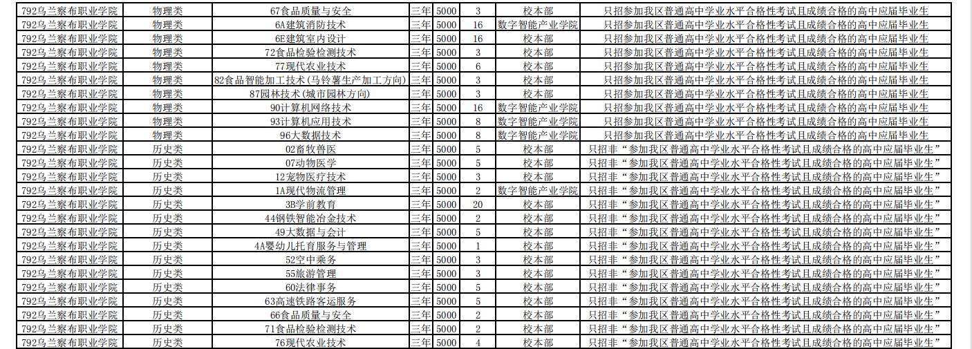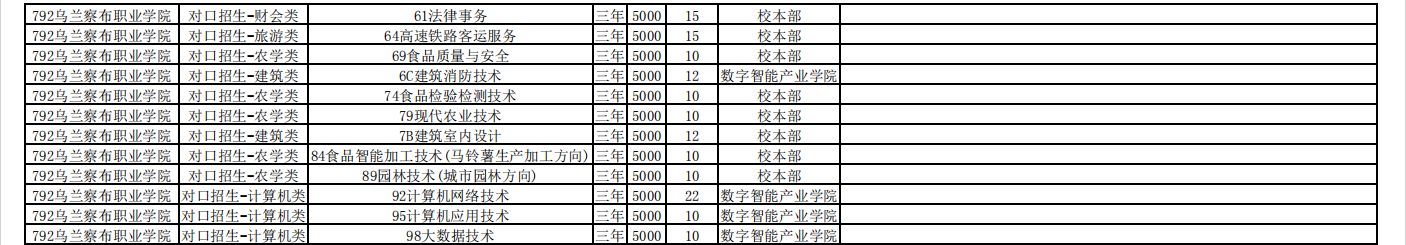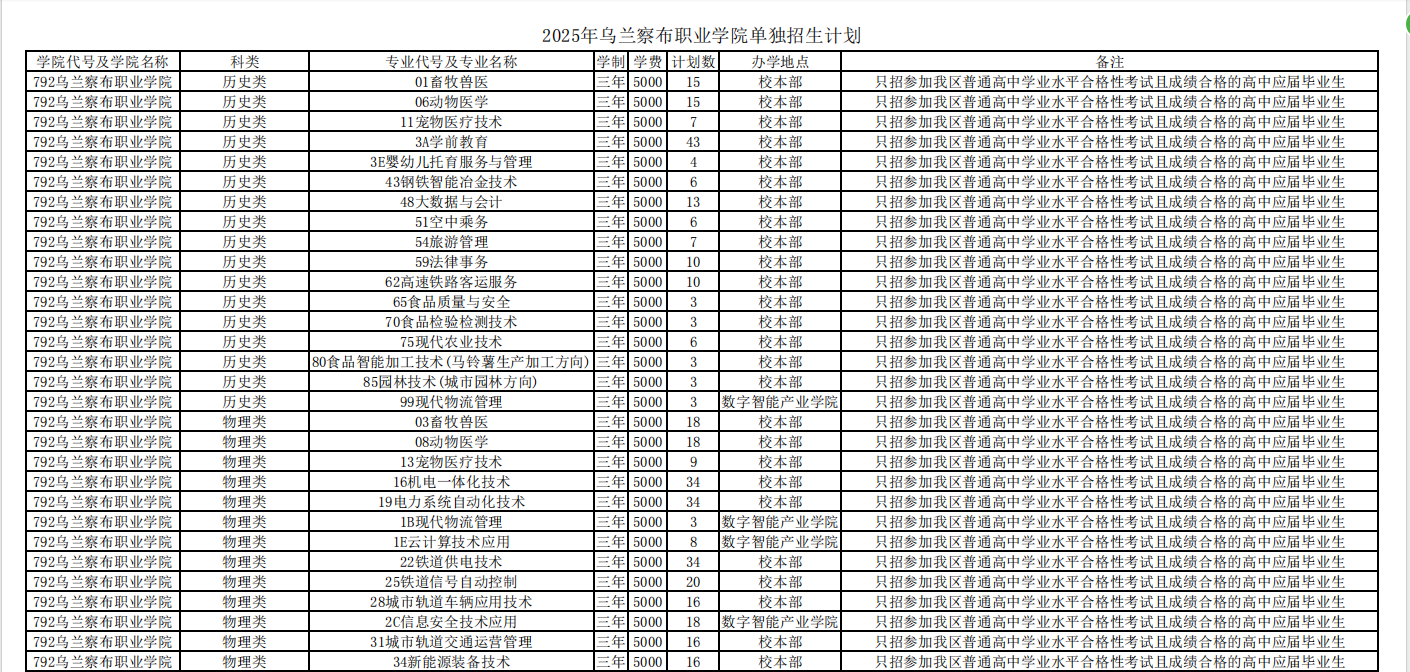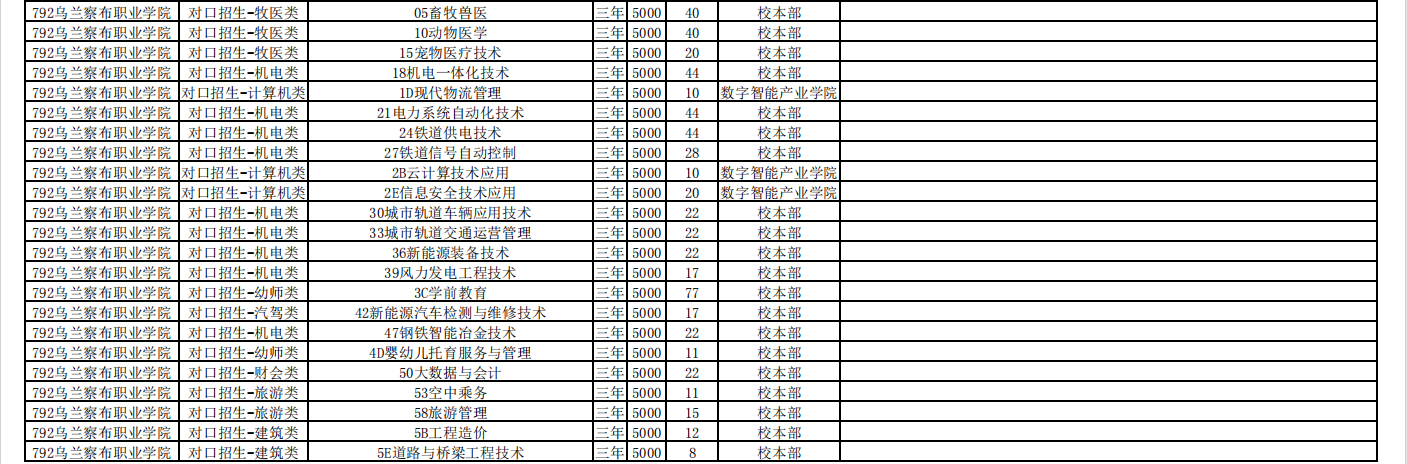 乌兰察布职业学院2025单招计划