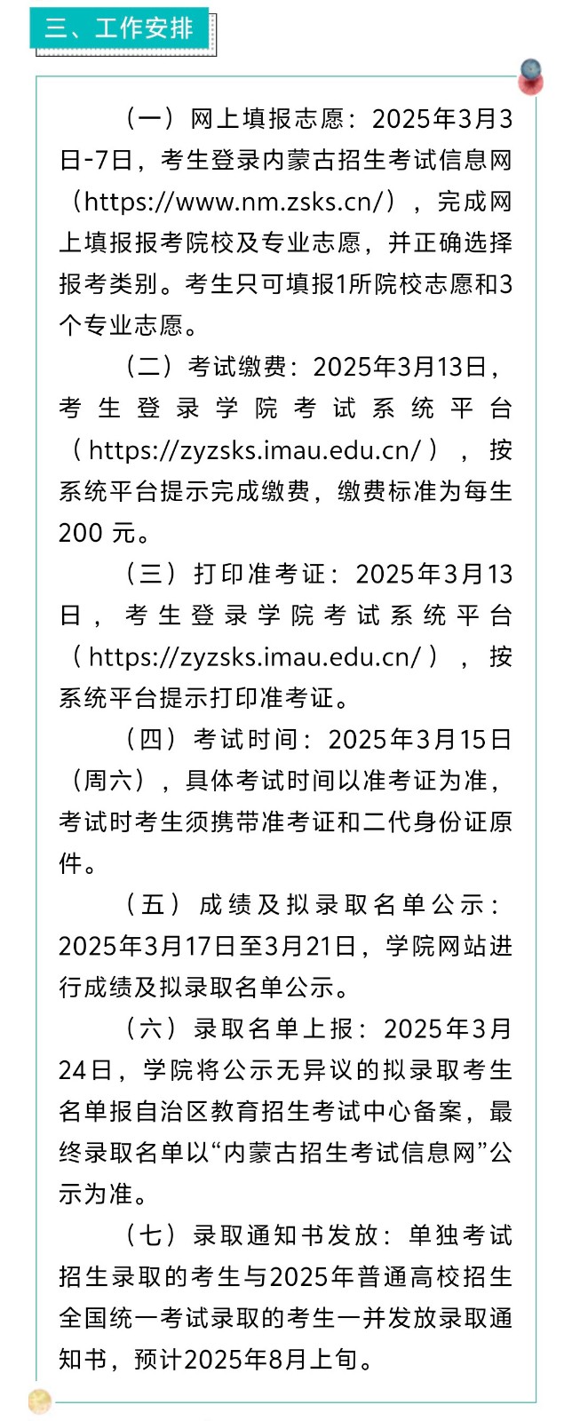 内蒙古农业大学职业技术学院2025年单独考试招生简章