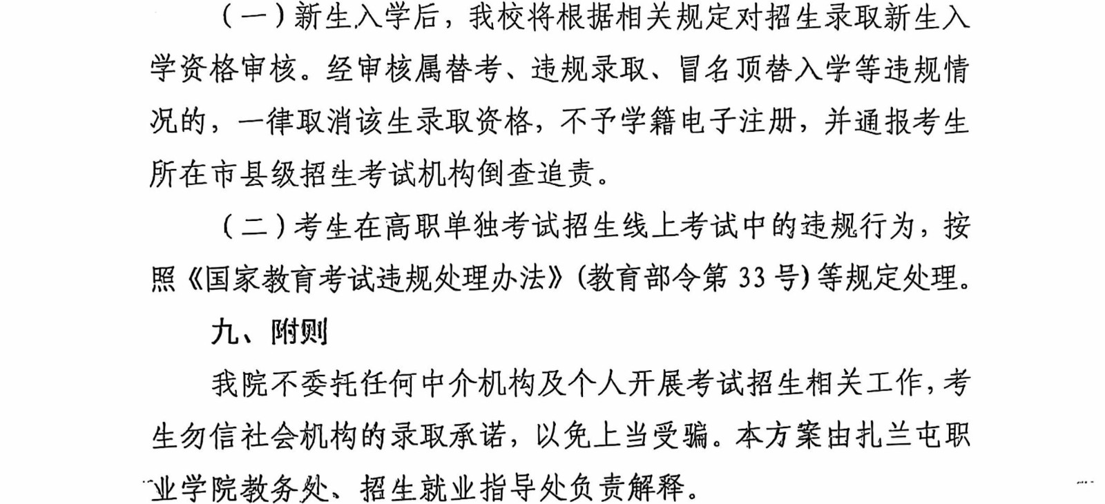 扎兰屯职业学院2025年单独招生考试工作执行方案